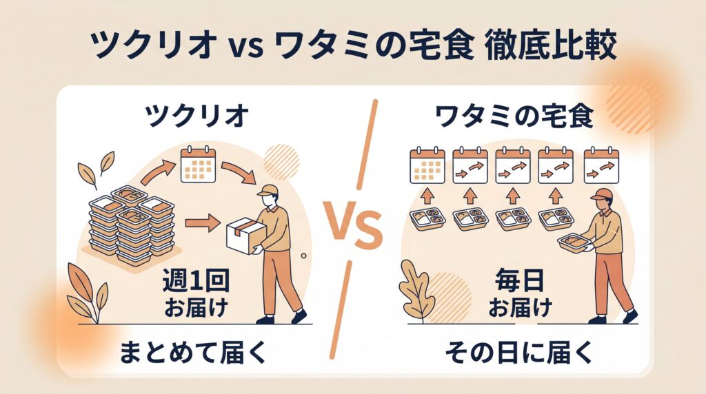 ツクリオ(旧つくりおき.jp)とワタミの宅食を徹底比較!料金・味・配送スタイルの違いは?