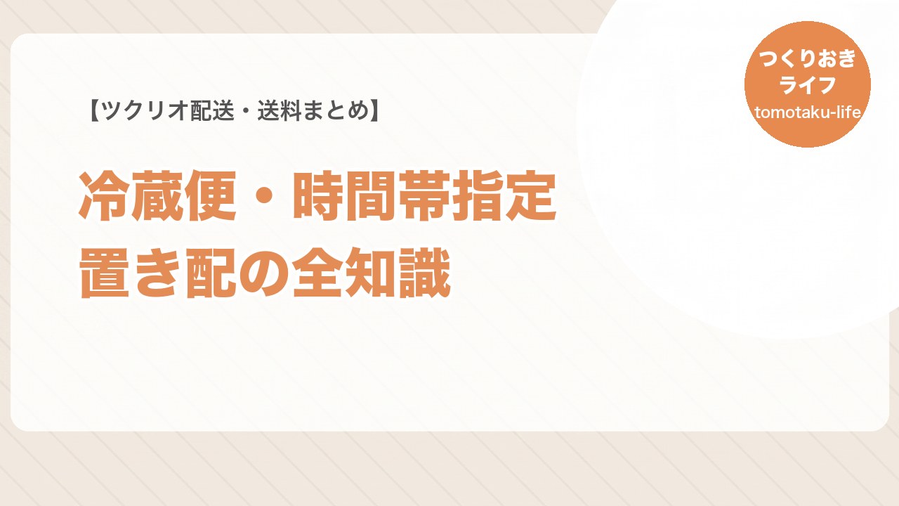 共働きで時間のない日々、ツクリオ(旧つくりおき.jp)を検討していて気になるのが送料・配送方法・受け取り方ではないでしょうか。「送料はいくら?」「冷凍便?冷蔵便?」「不在の時はどうなる?」といった疑問を、実際に2025年から利用している筆者が最新情報(2026年4月時点)でまとめました。