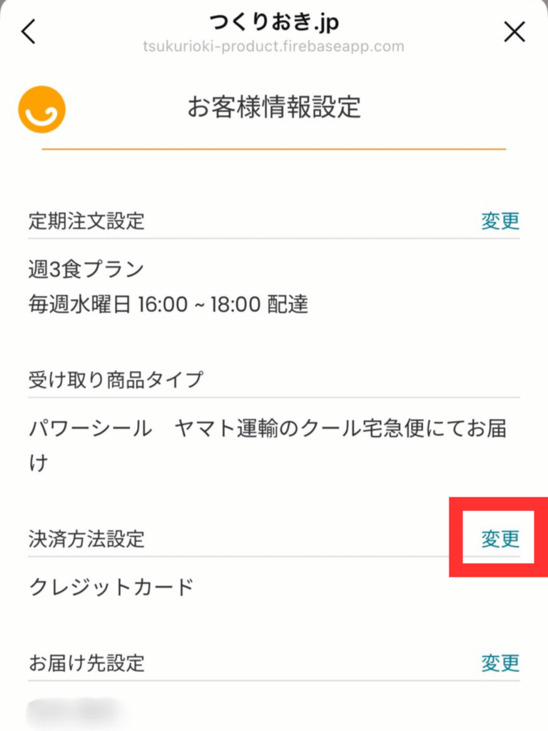 • 締め切り前に変更しないと、次回配送分は旧カードで決済される