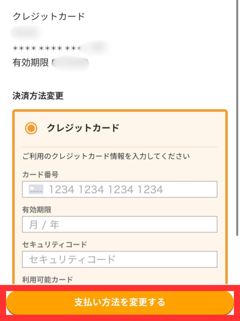 新しいカード情報を登録して、「支払い方法を変更する」をタップ