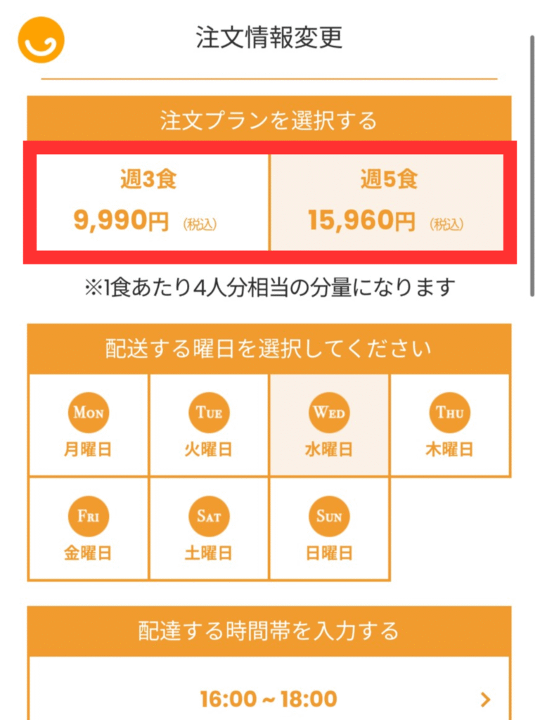 | 週5食プラン | 主菜1+副菜2〜3 × 5食 | 4人前×5食 | 15,960円 |