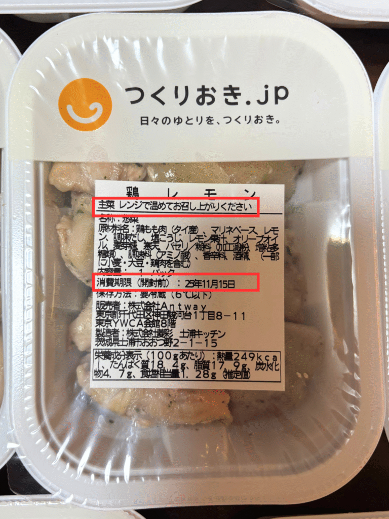 また、それぞれのおかずには「食べ方」と「消費期限」が記載されています。