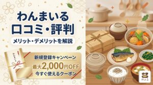 結論から言うと、わんまいるは国産食材100%・合成保存料不使用にこだわった冷凍惣菜サービスです。味の評判もかなり高いですよ。