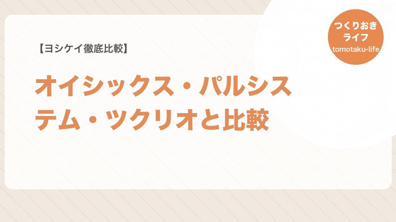 1食単価ベースではヨシケイの方が安い(350〜800円 vs 1,200円〜)です。ただし食材の質ではオイシックスの方に一定のアドバンテージがあります。